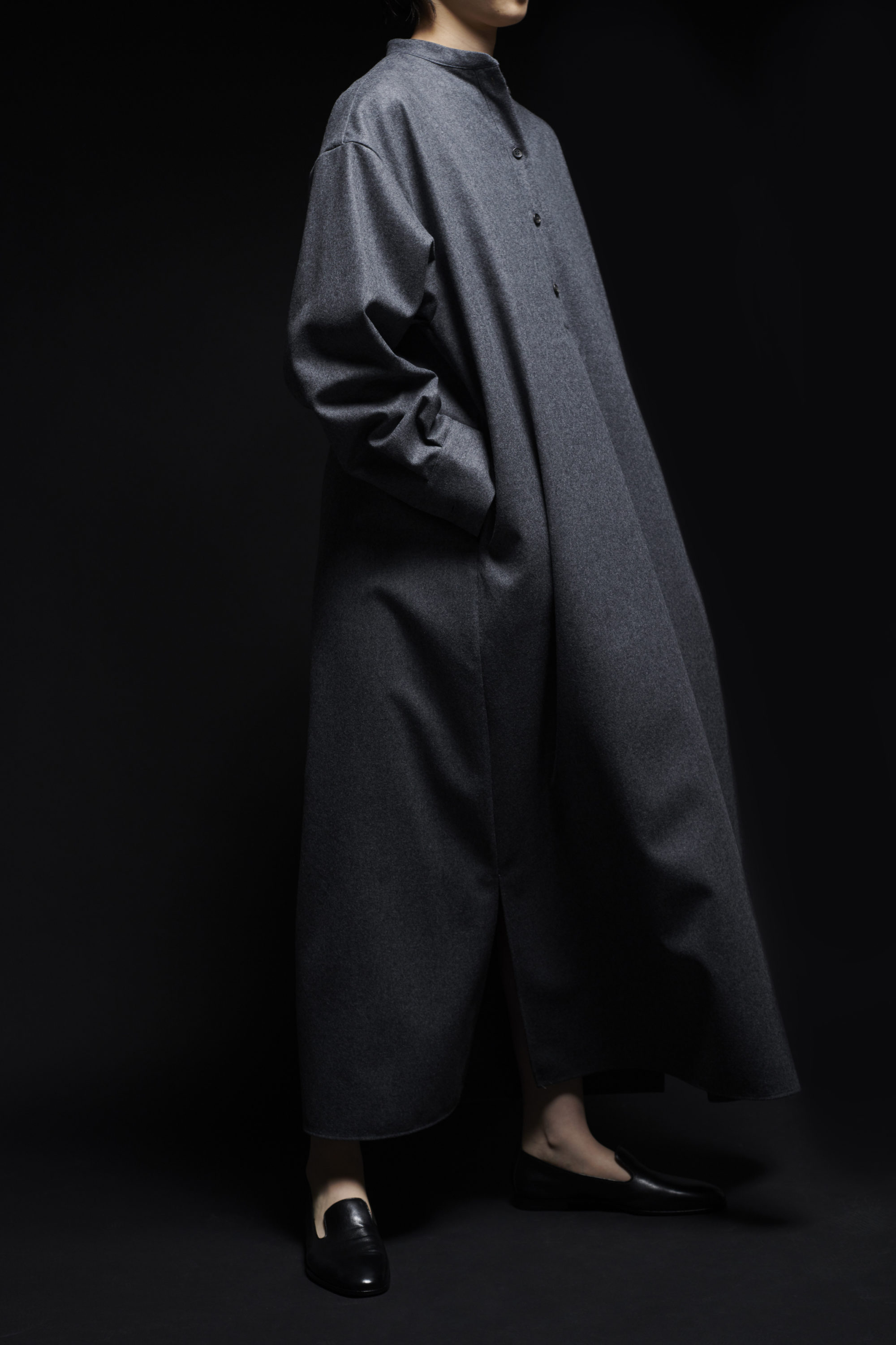 FINE FLANNEL STAND COLLAR SHIRT DRESS