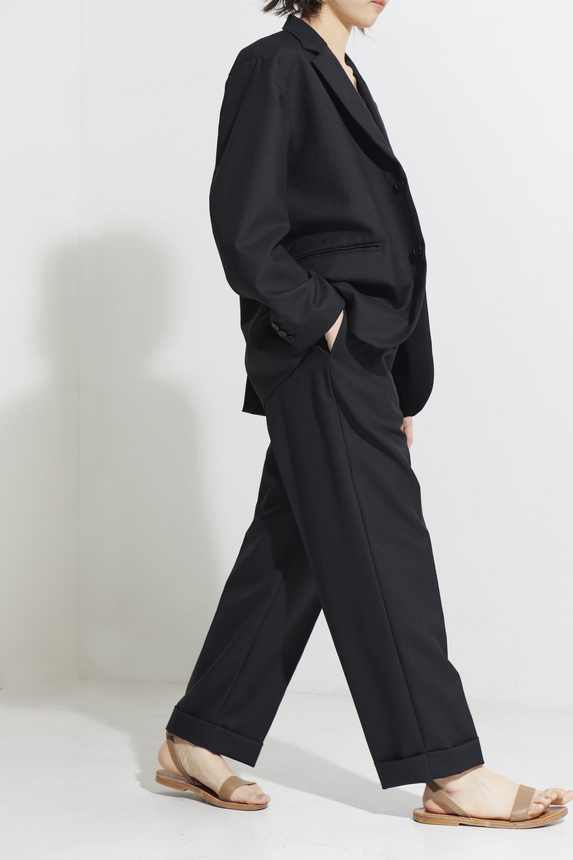 ALPACA WOOL STRIPE DRAWSTRING WIDE PANTS