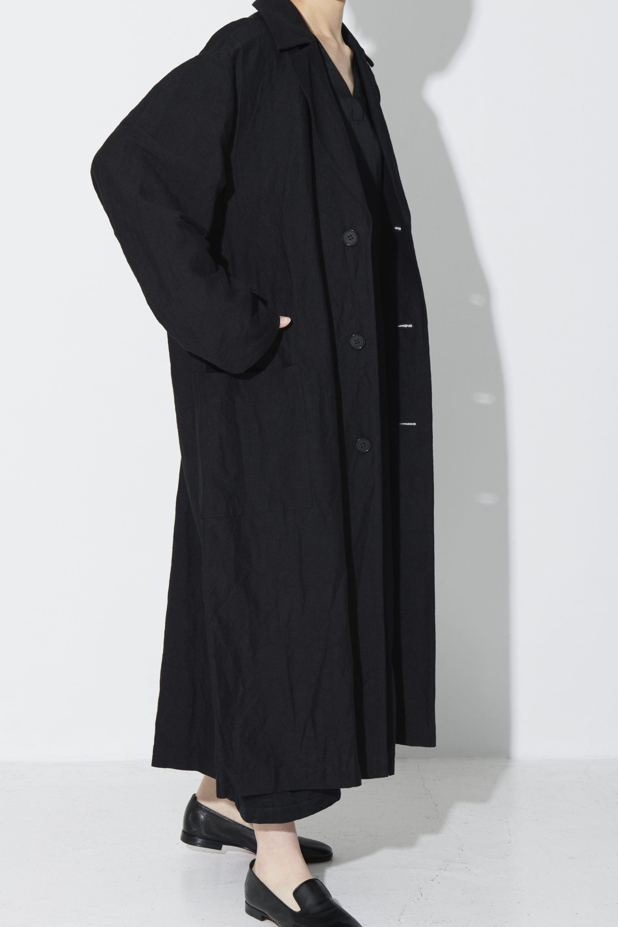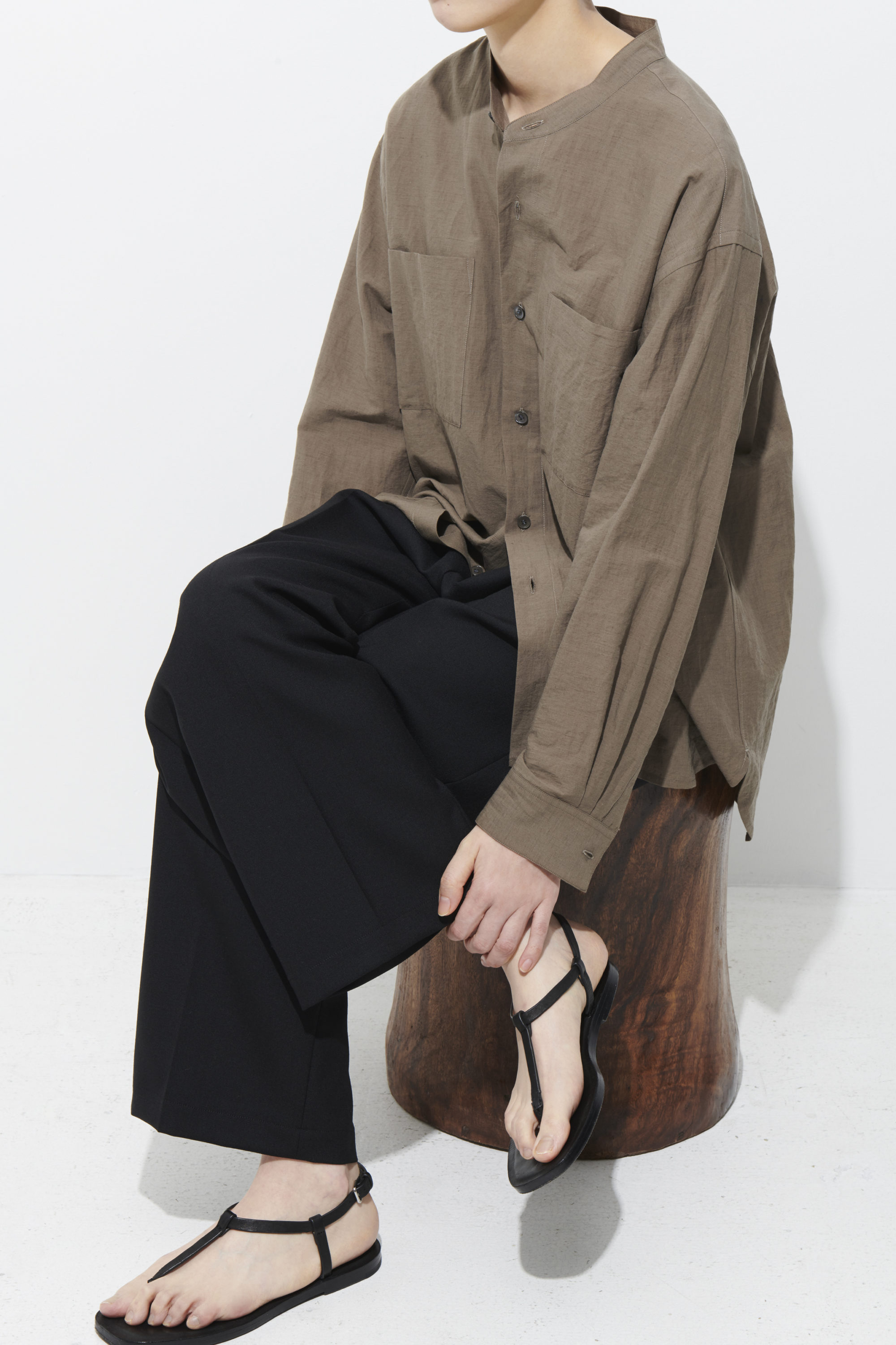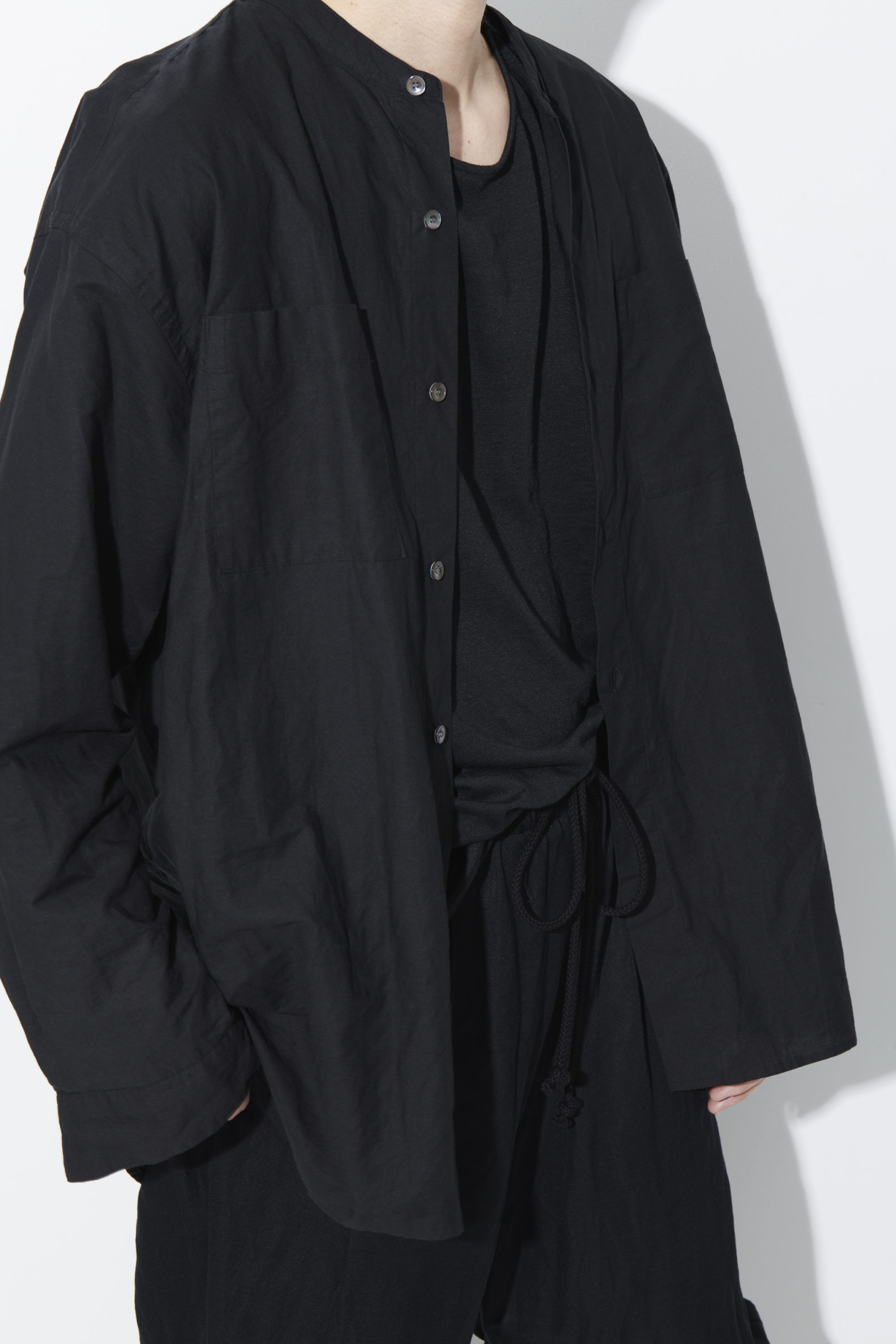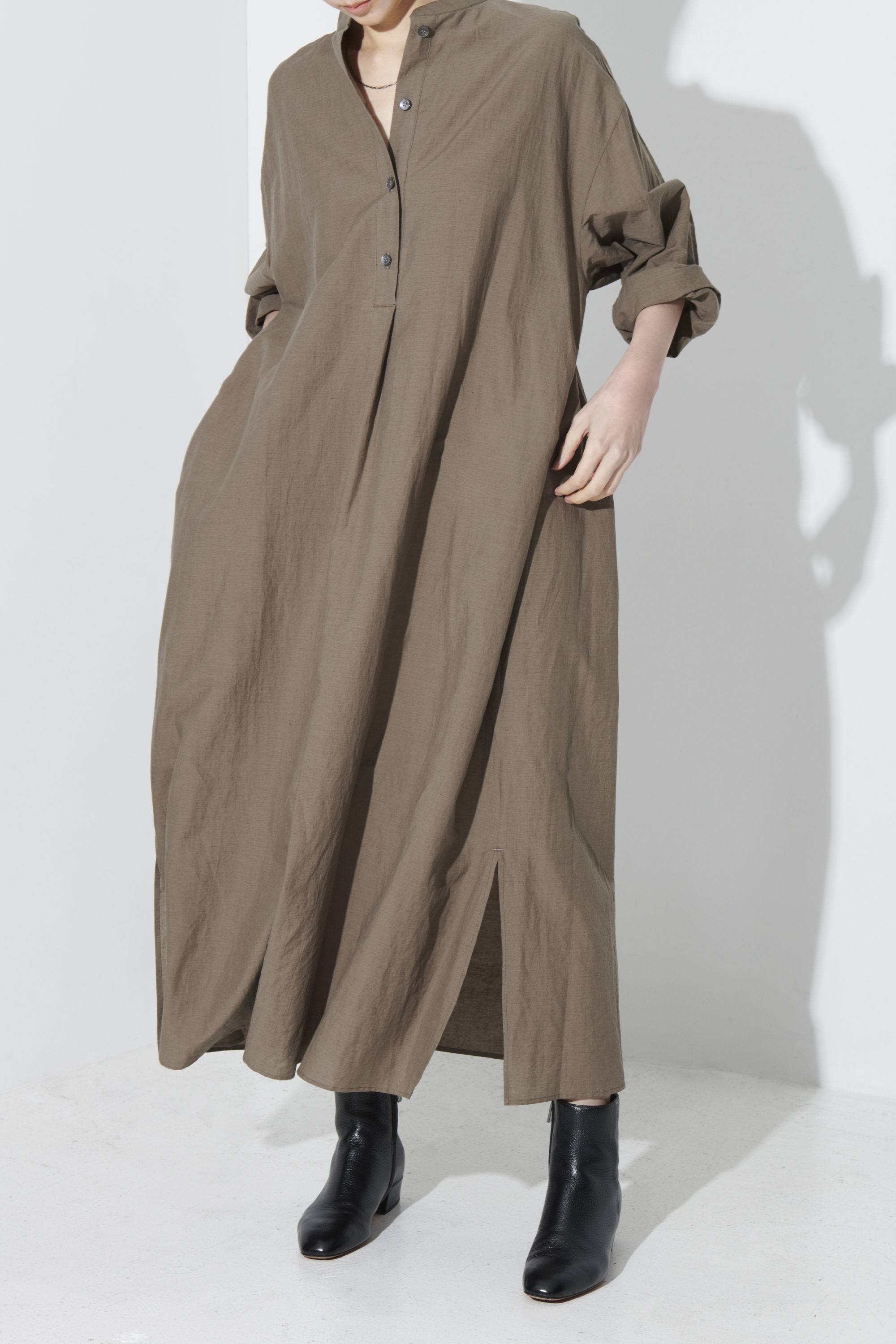 COTTON LINEN STAND COLLAR SHIRT DRESS