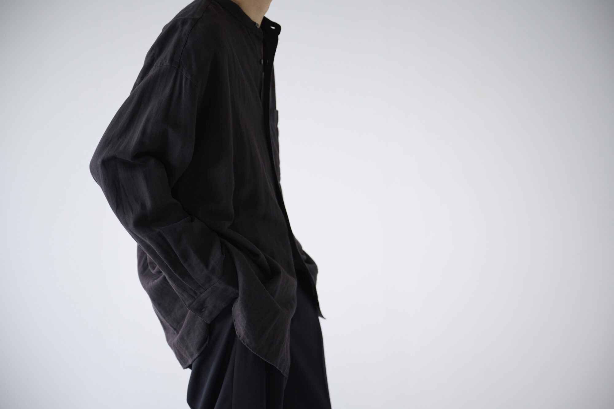 WASHI COTTON TWILL STAND COLLAR SHIRT